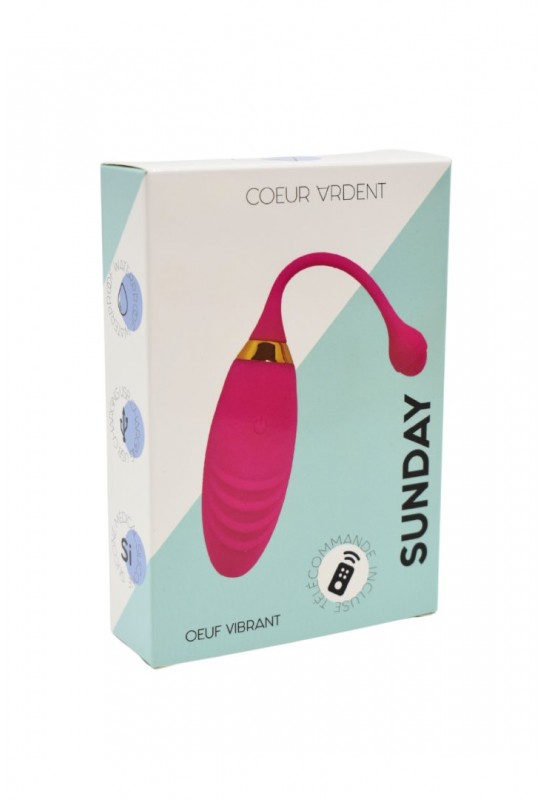 SUNDAY, un Œuf vibrant Rainuré Rose pour des sensations plus intenses. Œuf avec télécommandé à distance, dont vous pourrez contrôler les puissantes vibrations, 10 modes de vibration et 3 vitesses variables ! Vous allez pouvoir varier les sensations. Un moteur puissant qui réveillera tous vos sens. Dans un silicone rainuré et doux .