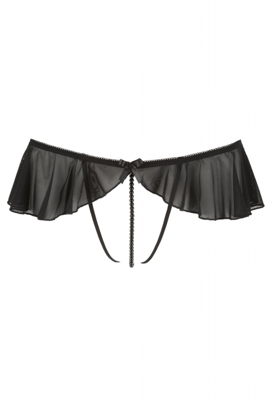 À l’entrejambe, un collier de perles noires apporte une touche provocante et raffinée, pensée pour éveiller les sens.