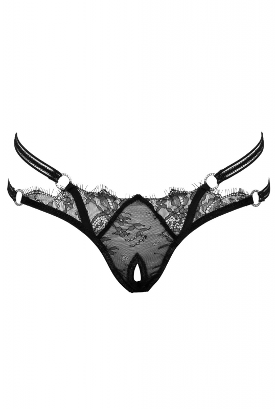 Élégance raffinée et ouverture audacieuse. Ce string noir séduit par sa dentelle eyelash délicate, partiellement doublée pour un rendu aussi féminin que confortable.