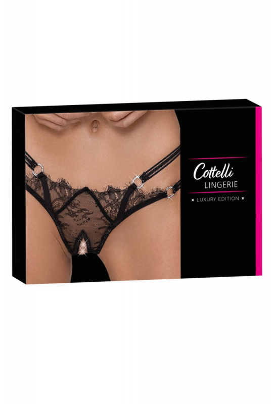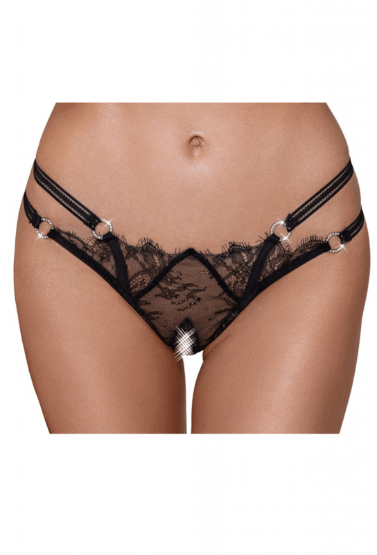 À l’avant, quatre anneaux ornés de strass irisés apportent une touche lumineuse et glamour. À l’arrière, un empiècement stretch assure une coupe parfaitement ajustée, agréable à porter.
