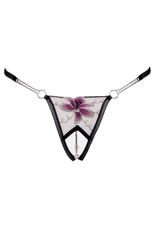 Séduisant jusque dans les moindres détails. Ce string ouvert séduit par son tulle fin et délicat, sublimé à l’avant par une broderie florale raffinée qui met en valeur l’ouverture sensuelle.
