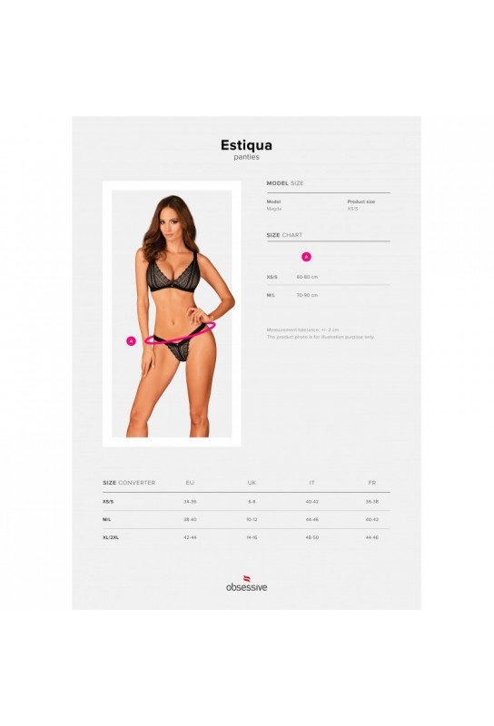 Cette culotte noire peut faire monter la température des jeux coquins dans la chambre ! Sa coupe extrêmement sexy et la délicatesse de la matière assureront une belle apparence et un confort total, et en combinaison avec un soutien-gorge assorti. Si vous préparez une soirée pleine de plaisirs torrides, n'oubliez pas d'ajouter ce modèle à votre liste d'achats gourmands !